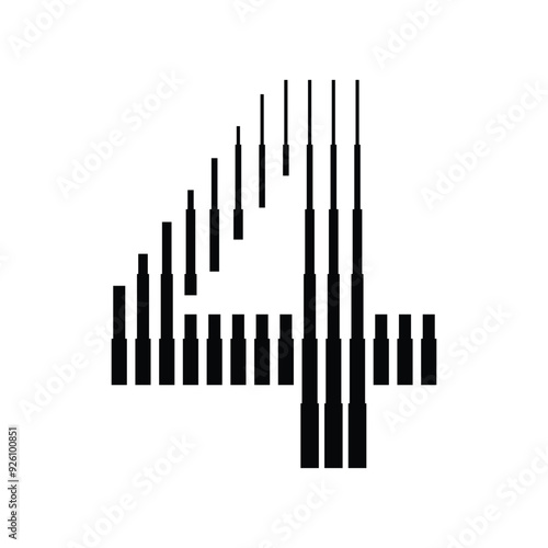 Number 4 logo with modern geometric abstract vertical linear halftone stripe pattern