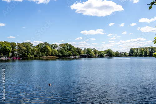 Nuremberg, Bavaria / Germany - May 06, 2020. The recreation area Dutzendteich near the Kongresshalle in Nuremberg.