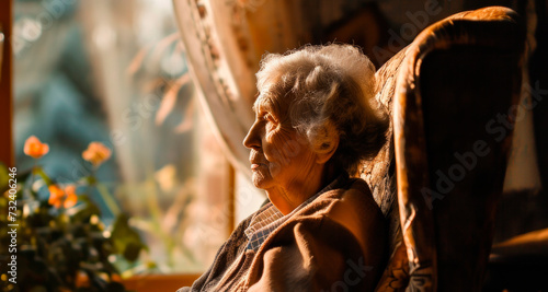 nursing home, an elderly woman is sitting, feeling tired