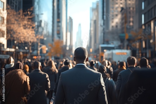 city, crowd, urban, street, businessman, skyscraper, building, metropolis, anonymous, commuter, rush hour, sunlight, shadow, backview, perspective, man, suit, walking, traffic, tied-up, city landscape, new york city, anonymity, daytime, people, humanity, massa, society, diversity, city landscape, transit, gentleman, professional, blurred background, city life, urban scene, street scene, individual, workday, business attire