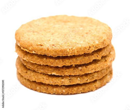 Oatmeal digestive biscuit, isolated on white background