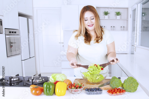 adult, beautiful, blond, board, bowl, broccoli, caucasian, cheerful, cooked, cooking, cutting, diet, fat, female, food, fresh, epicure, hair, hand, happy, healthy, home, indoor, kitchen, knife, lifestyle, lose, meal, mixing, corpulent, obesity, oil, olive, oven, overweight, person, prepare, salad, slice, smiling, standing, stove, table, tomatoes, using, vegetable, vegetarian, weight, woman, young