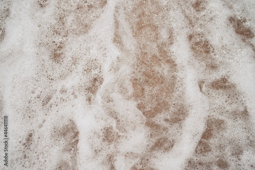 Ocean foamy wave on the sandy beach background
