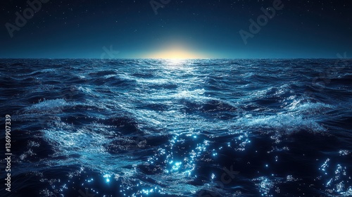 ocean, sea, water, wave, night, twilight, star, horizon, dark, blue, deep, calm, serene, peaceful, tranquil, mystery, immensity, immensity, forever, boundless, limitless, stillness, quietude, solitude, darkness, shadow, glow, light, surface, texture, atmosphere, scenic, landscape, nature, sky, cosmos, celestial, photo, wide