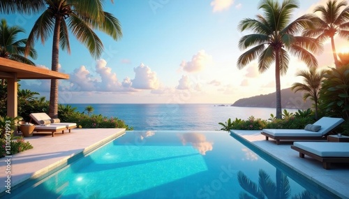 Oceanfront home, tranquil pool area, stunning vista, house, exterior, sky