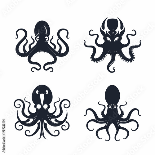 Octopus silhouettes set vector illustrations for design and creative projects