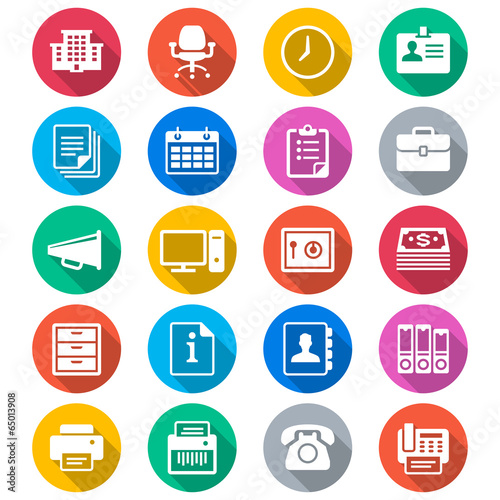 Office supplies flat color icons