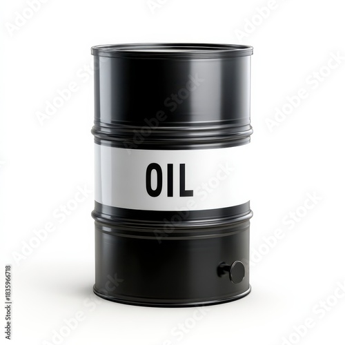 Oil Barrel Symbolism: A single black oil barrel with the word OIL prominently displayed, embodies the essence of the petroleum industry. It stands as a visual representation of energy resource.