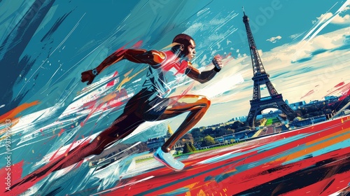 athlete, running, motion, digital illustration, paris, eiffel tower, background, sport, urban, sunset, fitness, action, silhouette, marathon, competition, speed, artwork, dynamic, energy, movement, city landscape, physical activity, endurance, art, creativity, expressiveness, scenery, health, stamina, determination, runner, aerobic, training, team, event, goal, performance, contemporary, lifestyle, abstract, optical, illustration, running shoe, exercise, summer, outdoors, leisure, skyline