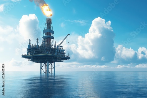 oil rig drilling platform emitting the fire