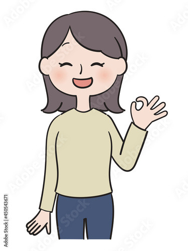 smile, success, smile, waist up, woman, people, sweet, vector, japanese, illustration, young, girl, 30s, pose, pretty, light, expression, homemaker, casual, enjoyment, rejoice, victory, joyful, ok, ok