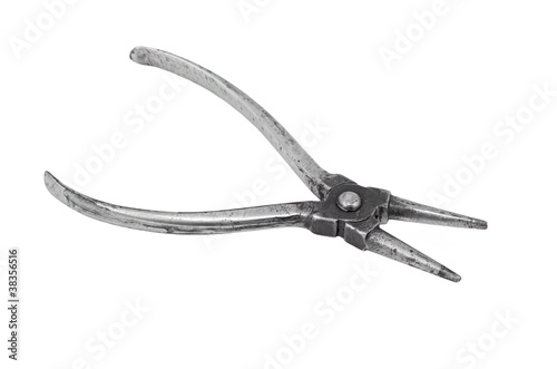 Old and rusty round-nose pliers, isolated on white background