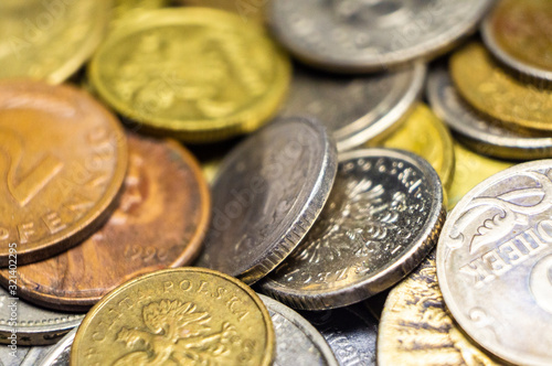 Old different coins close up. Macro photo