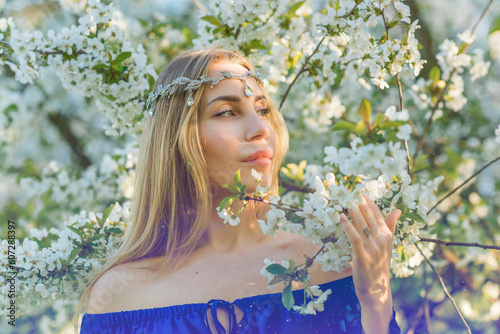 Old European magic, Mystical scene, Slavic woman at nature. Magic divination, undina. Illustrative photo for legends, creatures and fairytale. Mystical scene with nymph