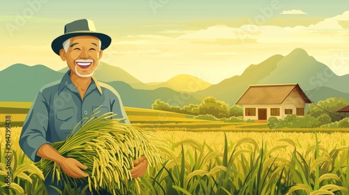 farmer, field, asian, people, rural, person, lifestyle, farm, agriculture, male, countryside, farmland, crop, old, senior, summer, smile, happy, nature, man, portrait, rice, outdoors, plant, agricultural, season, mature, harvest, adult, industry, casual attire, mobile phone, laptop, hot, sickle, old man, food, farming, labor, loincloth, healthy, cereal, happiness, yellow, hat, culture, siam
