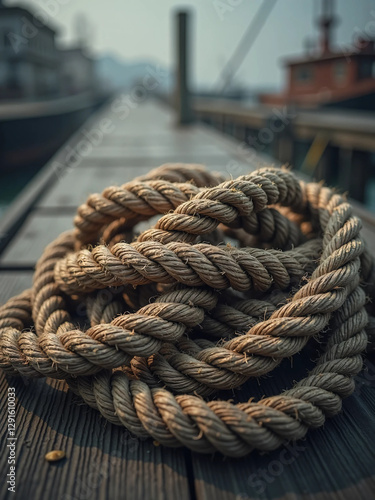 rope, old, frayed, dock, wooden, weathered, nautical, maritime, texture, fiber, rustic, vintage, aged, sea, ocean, misty, foggy, fishing, ship, boat, anchor, knot, tangled, coiled, rugged, salt, residue, moss, decay, weathering, detail, composition, realism, dramatic, lighting, coastal, fishing gear, thick, heavy, textured, marin, historic, traditional, photo, atmospheric, depth, blurred, contrast