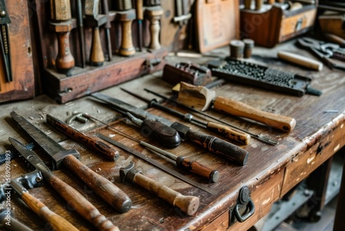 workshop, tool, workbench, wood, wooden, carpenter's shop, craftsmanship, traditional, craft, equipment, old, vintage, retro, antique, hand-made, hand, carpenter's shop, timber, timbering, construction, repair, maintenance, industry, labor, skill, artisan, carpenter, joiner, cabinetmaker, woodworker, metalworking, saw, hammer, chisel, file, screwdriver, plane, mallet, rasp, awl, drill, plier, vise, clamp, measure, ruler, level, square, toolbox