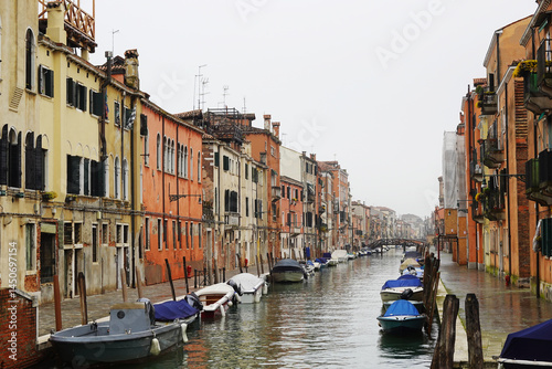 Old houses facades and channel in the old center of Venice, Italy