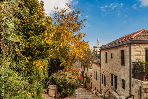 jerusalem, israel, old, stone, city, house, tour tourism, neighbourhood, home, history, travel, east, israeli, building, street, urban, holiday maker, tree, architecture, historic, wall, historical, middle, sky, district, calm, comfortable, quiet, restful, blue, flower, green, door, rest, holy, jewish, porch, yellow, window, brown, antique, ancient, landmark, bright, summer, beautiful, landscape, view