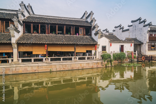 Old houses, rivers, and bridges in Zhouzhuang Ancient Town, Suzhou City, Jiangsu Province, China On April 18th, 2023