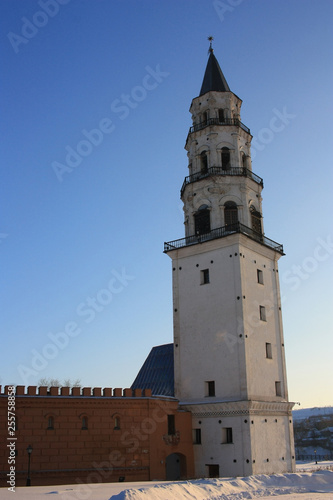 Old leaning tower in the city of Nevyansk