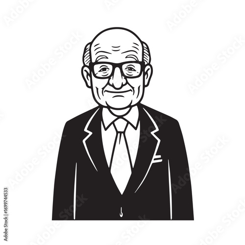 old, man, formal, suit, black, white, vector, illustration, portrait, artwork, design, classic, retro, vintage, drawing, vignetting, outline, symbol, icon, figure, character, face, male, elder, senior, gentleman, style, graphic, fashion, clothes, minimal, simple, modern, traditional, concept, creative, visual, aesthetic, composition, clean, monochrome, bold, elegance, artistic, model, expression, silhouette, sharp