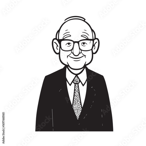 Old person in formal suit black and white vector illustration portrait elegant classic digital artwork