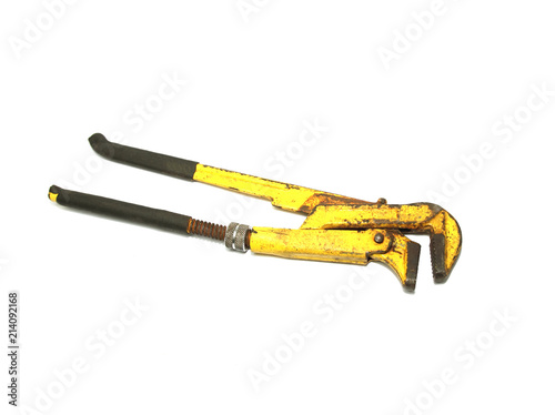 Old pipe wrench isolated on white background