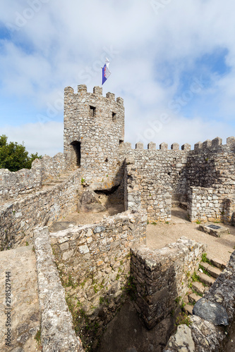 Old ruins of medieval hilltop castle Castelo dos Mouros (The Castle of the Moors) in Sintra, Portugal.
