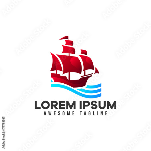 Old sailing ship logo. Vector illustration suitable for transportation, shipping, and marine travel.