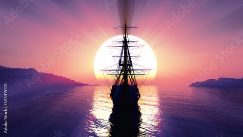 ship, old, ocean, sunset, sea, boat, water, sailboat, ancient, travel, sunrise, vessel, history, nautical, sky, wooden, silhouette, transportation, vintage, sail, adventure, historic, dusk, navigation, cruise, transport, historical, antique, retro, illustration, sun, sailing, dawn, fantasy, pirate, relaxing, evening, merchant, morning, sunlight, galleon, anchor, light, seascape, silhouetted, cloud, ray