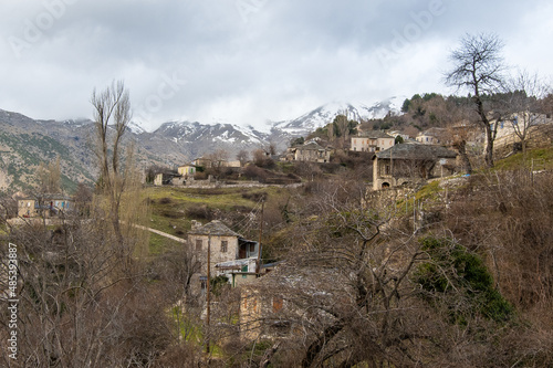 Old stone houses on the mountain at the traditional village of Kalarites in Tzoumerka, Greece