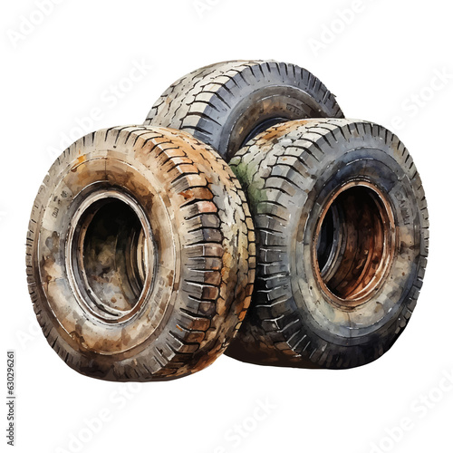 old tires waste watercolor illustration, generative AI