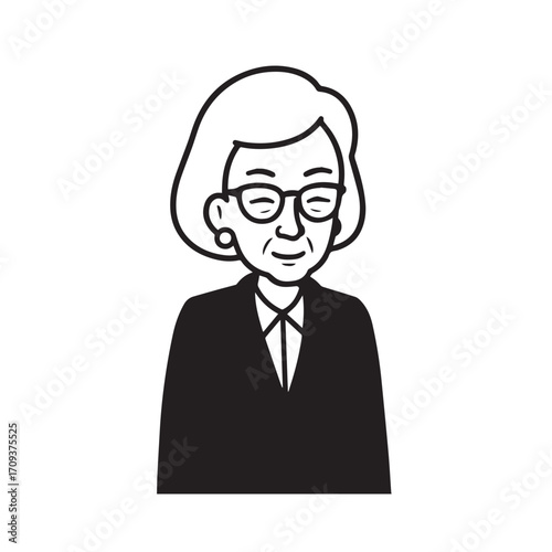 Old woman in formal clothes black and white vector illustration simple minimalist portrait design