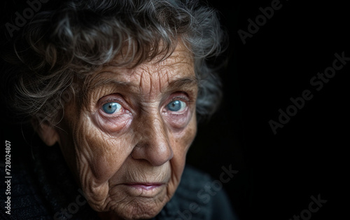 Old Woman With Blue Eyes Looking at the Camera