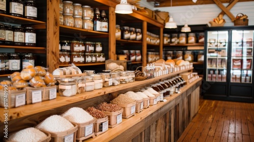 Old-fashioned general store interior, filled with heritage items, wooden shelves, and traditional lighting, a slice of bygone life, warm tones
