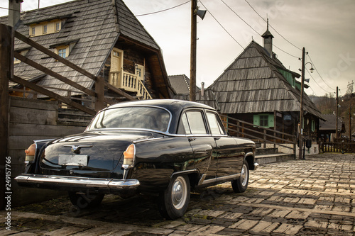 Oldtimer car in traditional retro village