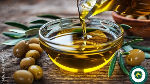 Olive oil i a bowl, fresh olive, oil