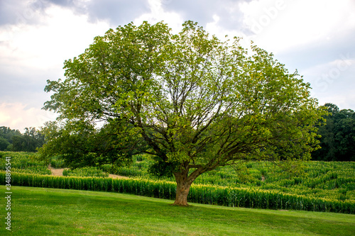 tree, landscape, nature, sky, grass, green, field, summer, meadow, blue, spring, tree, park, oak, forest, rural, countryside, cloud, environment, cloud, beautiful, plant, season, beauty