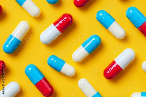 On a yellow background, there are two types of medicine pills.