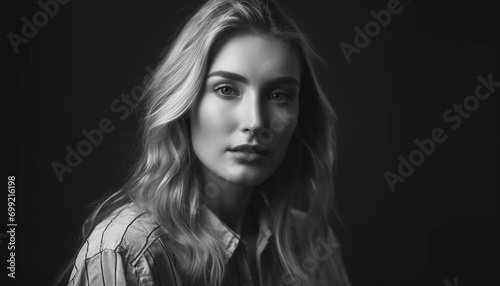 One beautiful woman, young and confident, looking at camera generated by AI