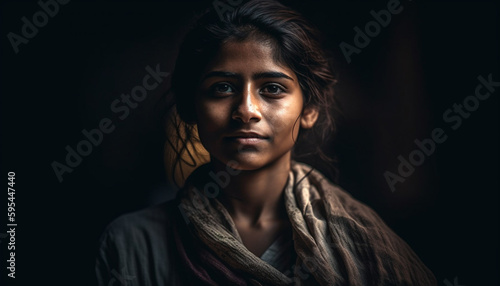 One beautiful young woman exudes confidence indoors generated by AI