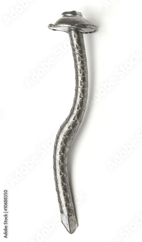 One broken steel nail, over white