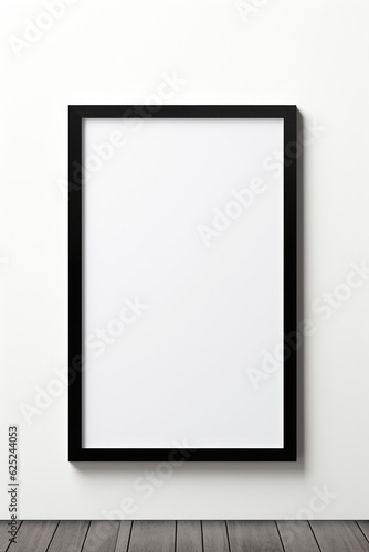 One empty frame hanging on a wall, thick black frame, portrait, mockup, generative AI