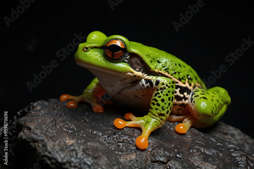 frog, rock, isolated, black background, amphibian, nature, wildlife, solitude, single, animal, stone, sitting, green, small, eye, leg, texture, surface, dark, shadow, sharpened, stillness, quiet, calm, natural, simplicity, minimalism, lonely, night, creature, environment, wet, cold-blooded, reptile, detail, closeup, peaceful, quietness, posture, alert, balance, wilderness, habitat, wild, tranquil, silence, mystery