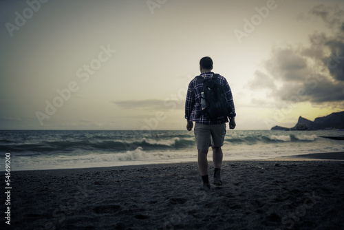 one men walking on the beach