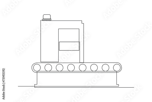 One single line drawing of goods carrying machine using a conveyor, commercial vehicle, factory technology minimalist concept. Modern continuous line draw graphic design, Simple line