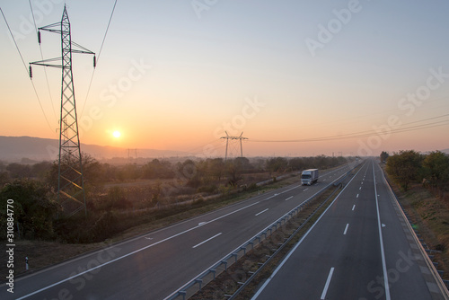 road, highway, sky, sunset, car, travel, asphalt, landscape, speed, transportation, traffic, way, country, nature, rural, horizon, street, transport, summer, night, line, blue, expressway, cloud, field, abstract, city, long, movement, drive, blurred, vehicle, dark, red, fast, blur, motion, light