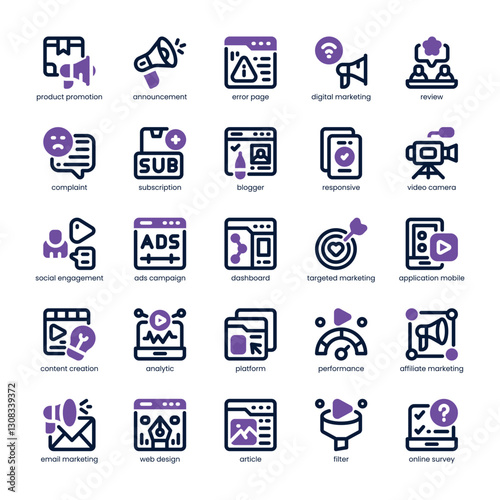 Online Branding Icon pack for your website, mobile, presentation, and logo design. Online Branding Icon dual tone design. Vector graphics illustration and editable stroke.