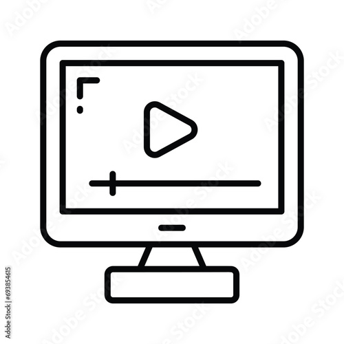motion picture, video, watching, monitor, online, entertainment, film, contraption, media, multimedia, technology, display, screen, lcd, computer, streaming, broadcast, appliance, play, icon, vector, illustration, line, linear, outline, black